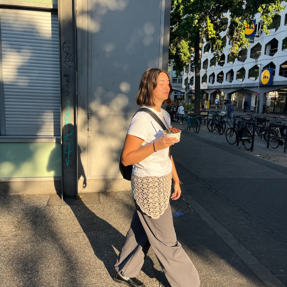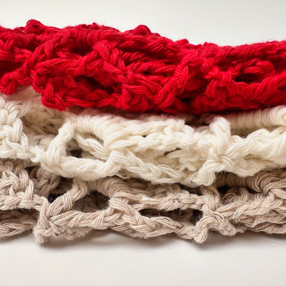 Dentelle stands out with its elegant and stylish handmade design. Crafted from cotton yarn, it is offered in four other color options: red, champagne, cream and electric blue.